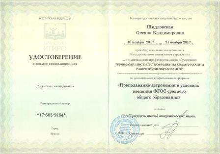 ШИДЛОВСКАЯ  ОКСАНА  ВЛАДИМИРОВНА